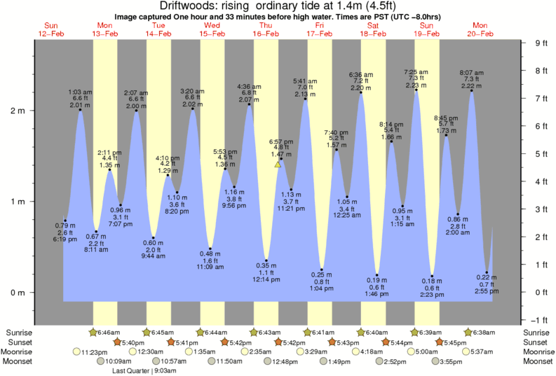 Image captured One hour and 33 minutes before high water (rising ordinary tide). Tide height was 1.4m (4.5 ft). Range 2.62m (8.6 ft). Toggle tide graph