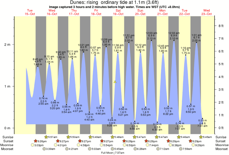Image captured 3 hours and 2 minutes before high water (rising ordinary tide). Tide height was 1.1m (3.6 ft). Range 2.35m (7.7 ft). Toggle tide graph