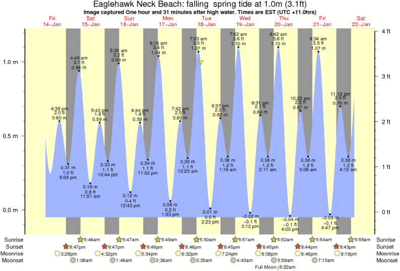Forecast wind and swell just offshore from Eaglehawk Neck Beach around the time the photo was taken