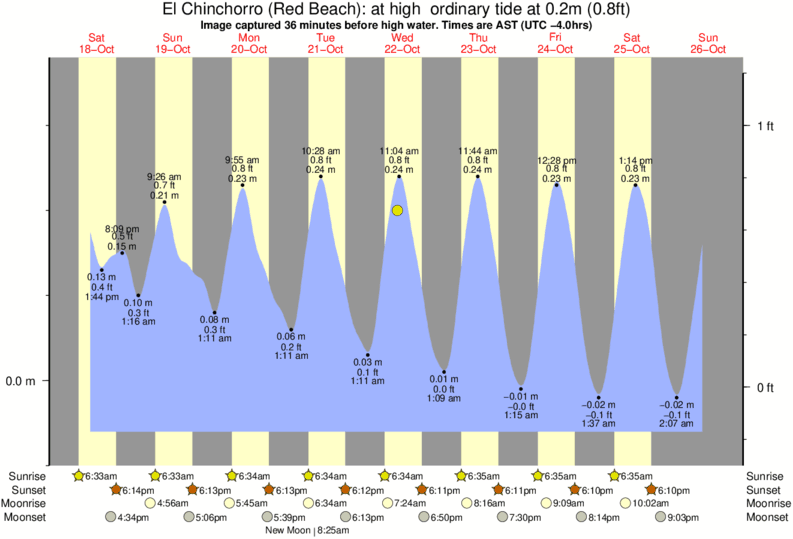 Forecast wind and swell just offshore from El Chinchorro (Red Beach) around the time the photo was taken