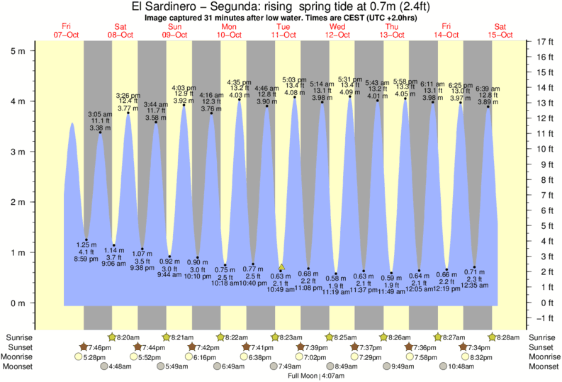 Image captured 31 minutes after low water (rising spring tide). Tide height was 0.7m (2.4 ft). Range 4.78m (15.7 ft). Toggle tide graph