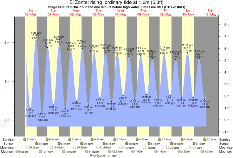 Forecast wind and swell just offshore from El Zonte around the time the photo was taken