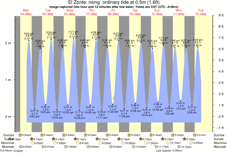 Forecast wind and swell just offshore from El Zonte around the time the photo was taken