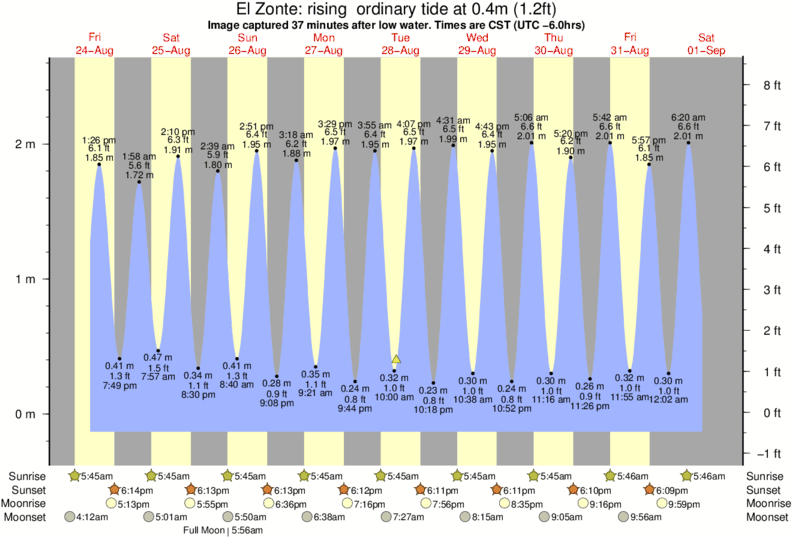 Forecast wind and swell just offshore from El Zonte around the time the photo was taken