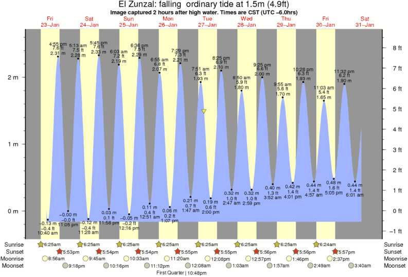 Forecast wind and swell just offshore from El Zunzal around the time the photo was taken