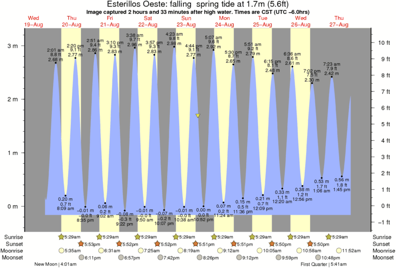 Image captured 2 hours and 33 minutes after high water (falling spring tide). Tide height was 1.7m (5.6 ft). Range 3.17m (10.4 ft). Toggle tide graph