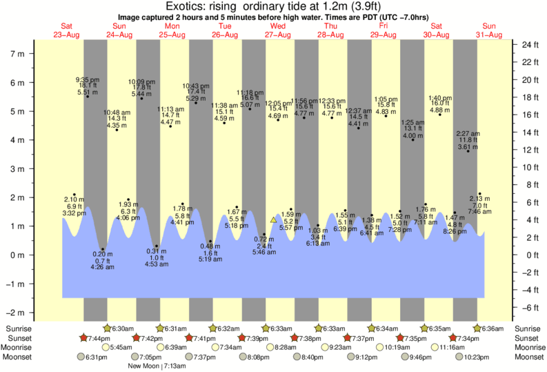 Image captured 2 hours and 5 minutes before high water (rising ordinary tide). Tide height was 1.2m (3.9 ft). Range 8.16m (26.8 ft). Toggle tide graph
