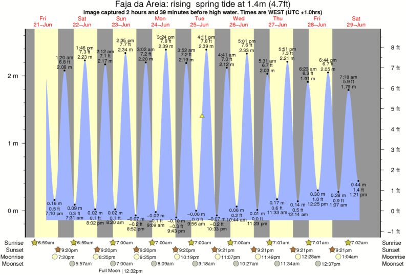 Forecast wind and swell just offshore from Faja da Areia around the time the photo was taken