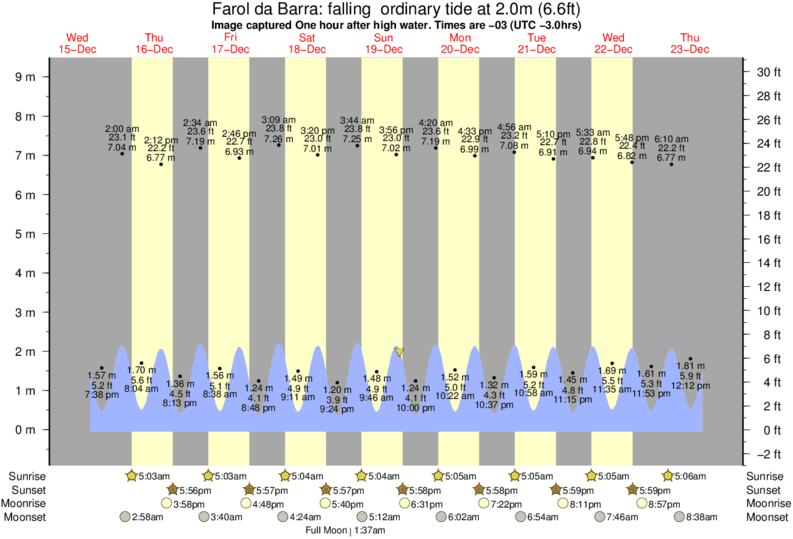 Forecast wind and swell just offshore from Farol da Barra around the time the photo was taken