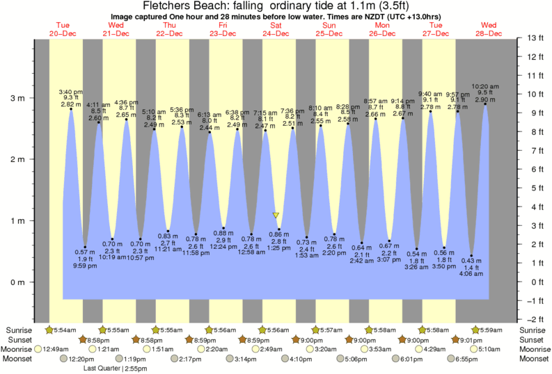 Forecast wind and swell just offshore from Fletchers Beach around the time the photo was taken