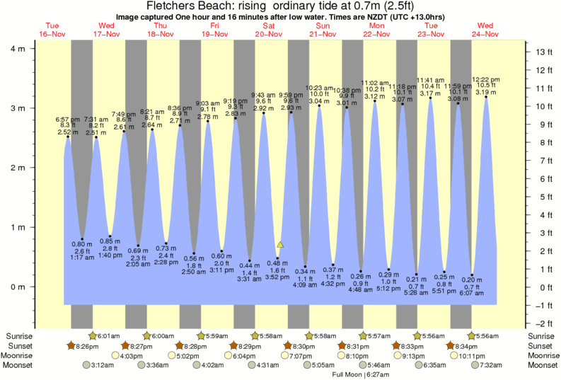 Forecast wind and swell just offshore from Fletchers Beach around the time the photo was taken