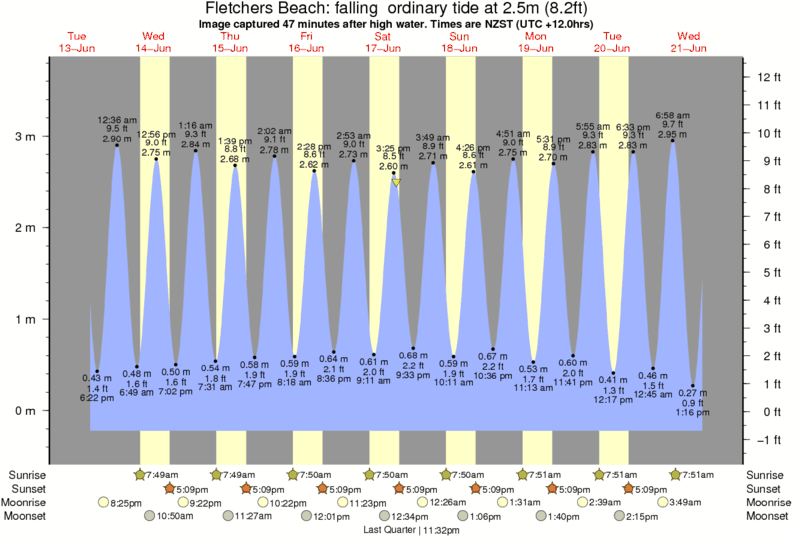 Forecast wind and swell just offshore from Fletchers Beach around the time the photo was taken