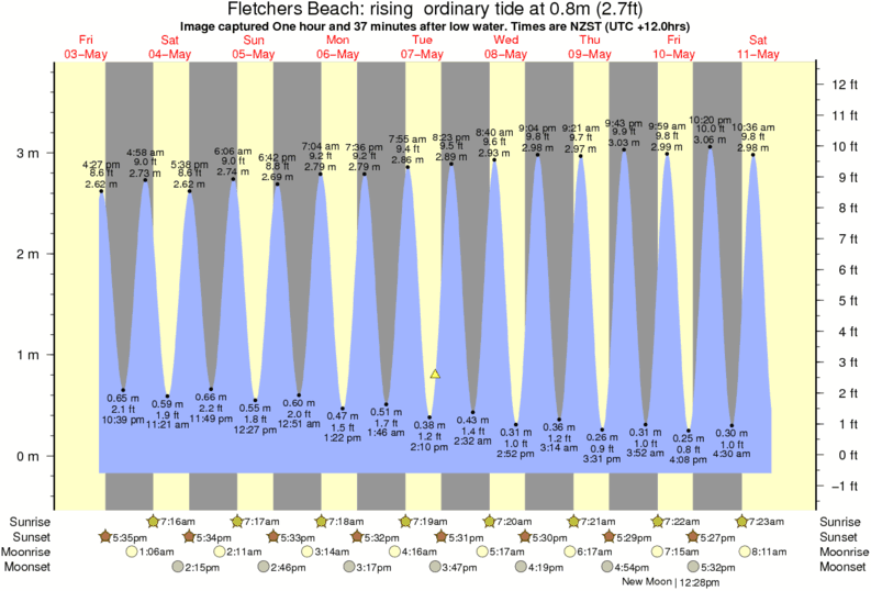 Forecast wind and swell just offshore from Fletchers Beach around the time the photo was taken