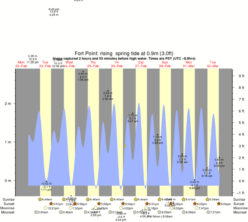 Image captured 2 hours and 55 minutes before high water (rising spring tide). Tide height was 0.9m (3.0 ft). Range 2.76m (9.1 ft). Toggle tide graph