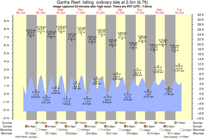 Image captured 53 minutes after high water (falling ordinary tide). Tide height was 2.0m (6.7 ft). Range 10.83m (35.5 ft). Toggle tide graph