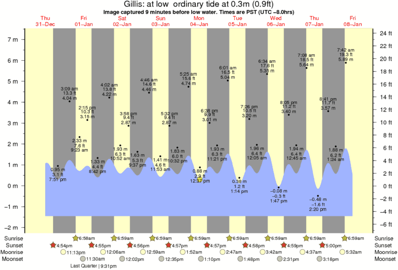 Forecast wind and swell just offshore from Gillis around the time the photo was taken