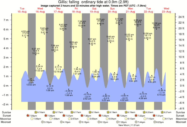 Forecast wind and swell just offshore from Gillis around the time the photo was taken