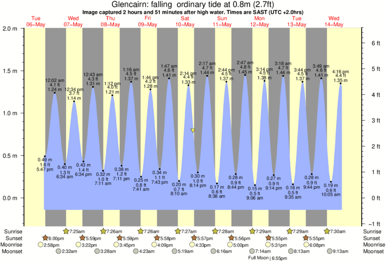 Image captured 2 hours and 51 minutes after high water (falling ordinary tide). Tide height was 0.8m (2.7 ft). Range 1.95m (6.4 ft). Toggle tide graph