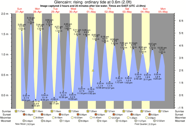 Image captured 2 hours and 25 minutes after low water (rising ordinary tide). Tide height was 0.6m (2.0 ft). Range 1.95m (6.4 ft). Toggle tide graph