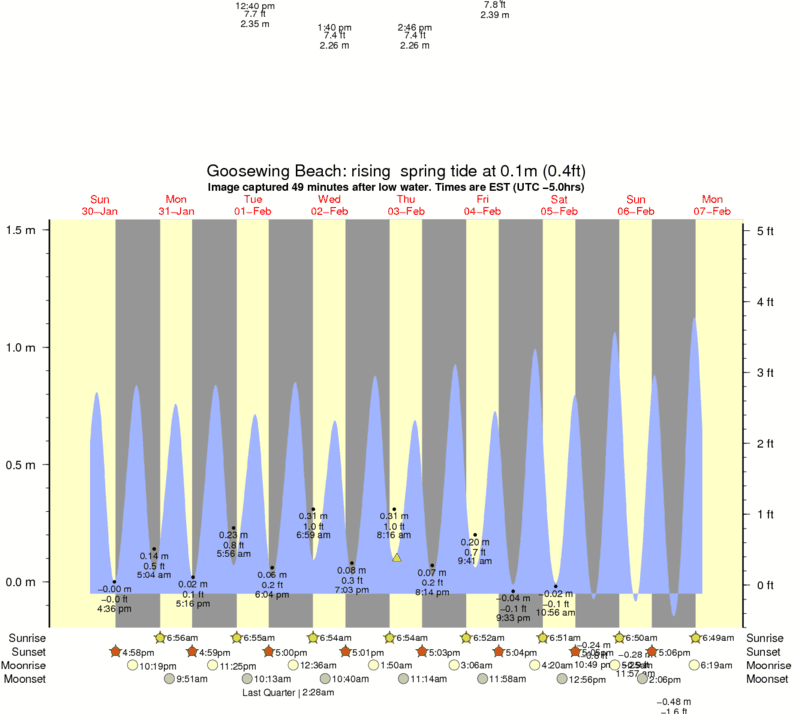 Image captured 49 minutes after low water (rising spring tide). Tide height was 0.1m (0.4 ft). Range 1.45m (4.8 ft). Toggle tide graph