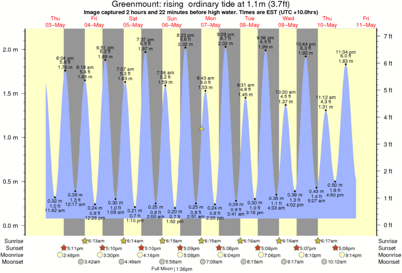 Image captured 2 hours and 22 minutes before high water (rising ordinary tide). Tide height was 1.1m (3.7 ft). Range 1.96m (6.4 ft). Toggle tide graph