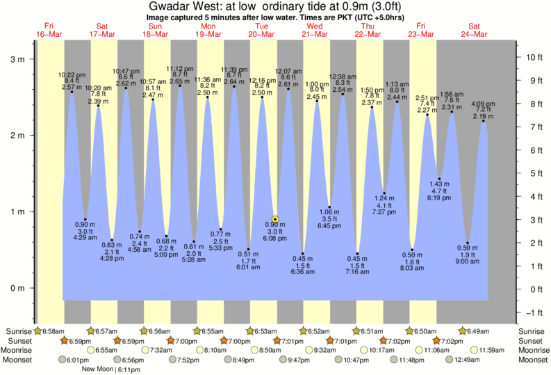 Forecast wind and swell just offshore from Gwadar West around the time the photo was taken