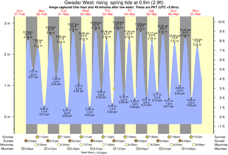 Forecast wind and swell just offshore from Gwadar West around the time the photo was taken