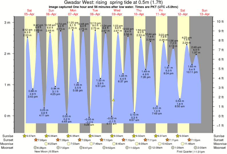 Forecast wind and swell just offshore from Gwadar West around the time the photo was taken