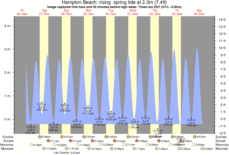 Image captured One hour and 35 minutes before high water (rising spring tide). Tide height was 2.3m (7.4 ft). Range 4.20m (13.8 ft). Toggle tide graph