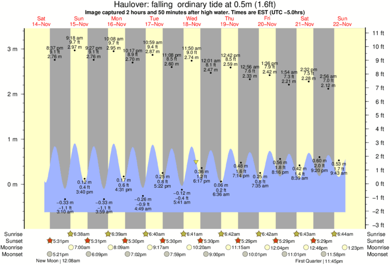 Image captured 2 hours and 50 minutes after high water (falling ordinary tide). Tide height was 0.5m (1.6 ft). Range 3.71m (12.2 ft). Toggle tide graph