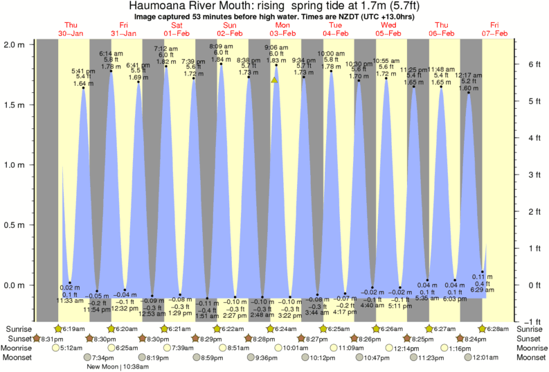 Image captured 53 minutes before high water (rising spring tide). Tide height was 1.7m (5.7 ft). Range 1.96m (6.4 ft). Toggle tide graph