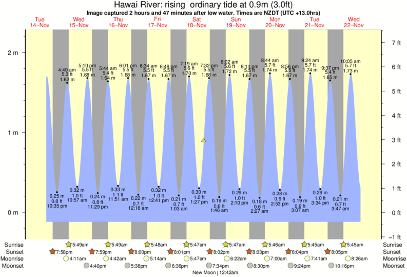 Image captured 2 hours and 48 minutes after low water (rising ordinary tide). Tide height was 0.9m (3.0 ft). Range 2.19m (7.2 ft). Toggle tide graph