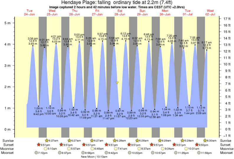Image captured 2 hours and 42 minutes before low water (falling ordinary tide). Tide height was 2.2m (7.4 ft). Range 4.73m (15.5 ft). Toggle tide graph