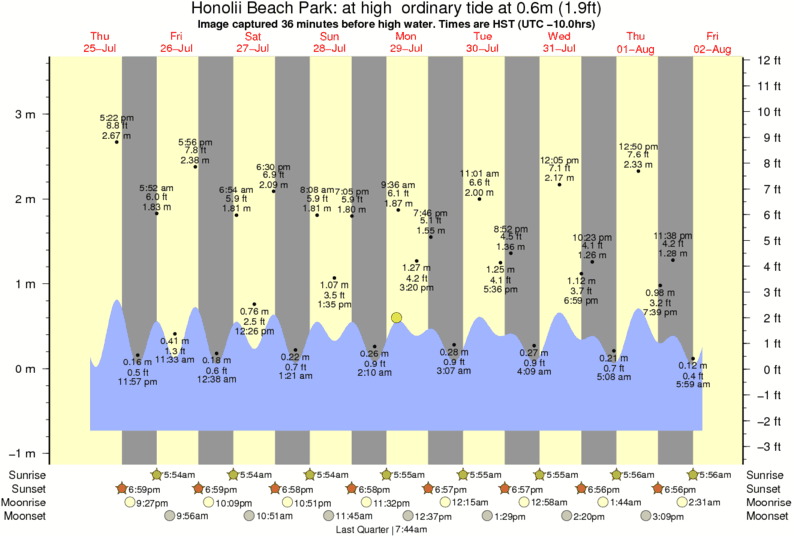 Forecast wind and swell just offshore from Honolii Beach Park around the time the photo was taken