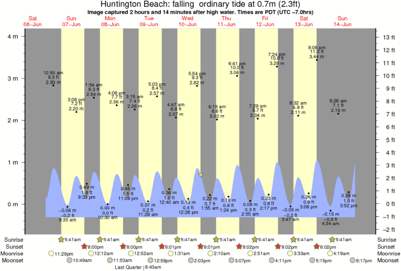 Forecast wind and swell just offshore from Huntington Beach around the time the photo was taken