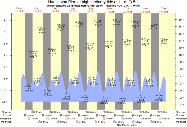 Forecast wind and swell just offshore from Huntington Pier around the time the photo was taken
