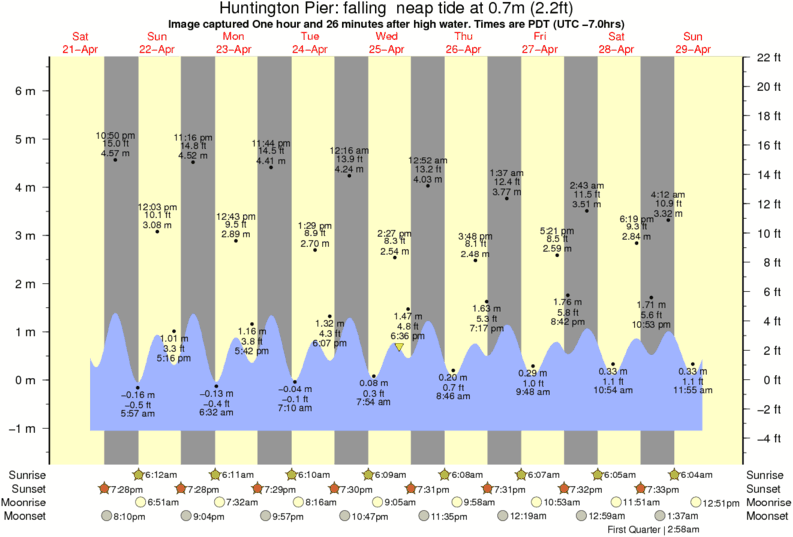 Forecast wind and swell just offshore from Huntington Pier around the time the photo was taken