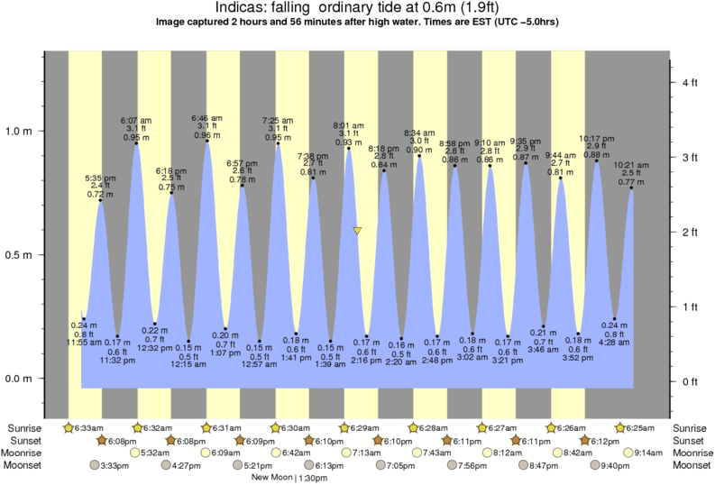 Image captured 2 hours and 56 minutes after high water (falling ordinary tide). Tide height was 0.6m (1.9 ft). Range 1.24m (4.1 ft). Toggle tide graph