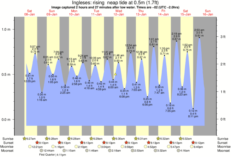 Image captured 2 hours and 27 minutes after low water (rising neap tide). Tide height was 0.5m (1.7 ft). Range 1.10m (3.6 ft). Toggle tide graph