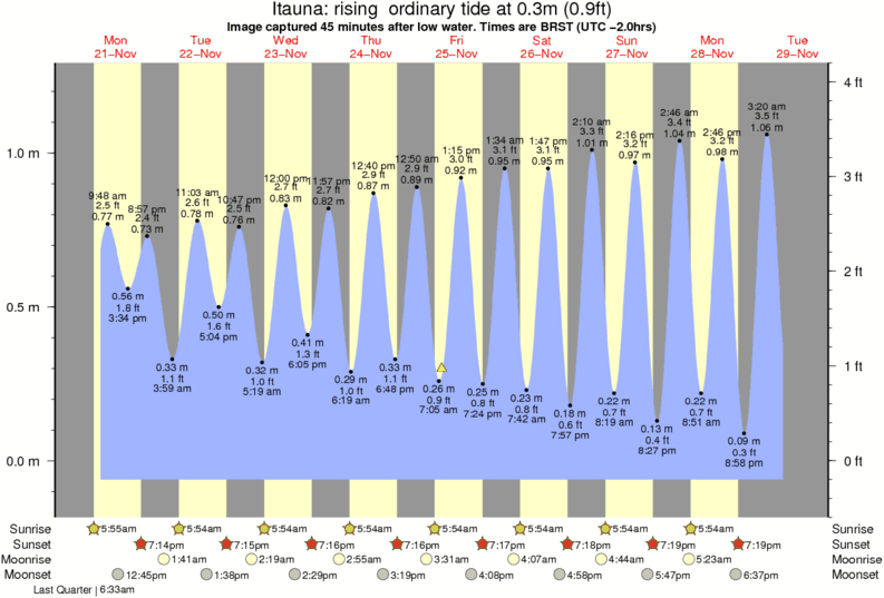 Forecast wind and swell just offshore from Itaúna around the time the photo was taken
