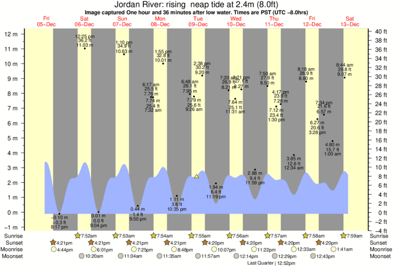 Image captured One hour and 36 minutes after low water (rising neap tide). Tide height was 2.4m (8.0 ft). Range 11.34m (37.2 ft). Toggle tide graph