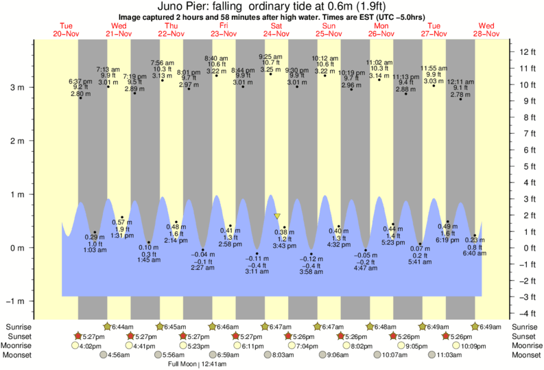 Image captured 2 hours and 58 minutes after high water (falling ordinary tide). Tide height was 0.6m (1.9 ft). Range 4.37m (14.3 ft). Toggle tide graph