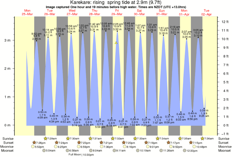 Forecast wind and swell just offshore from Karekare around the time the photo was taken