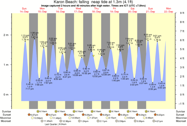 Forecast wind and swell just offshore from Karon Beach around the time the photo was taken