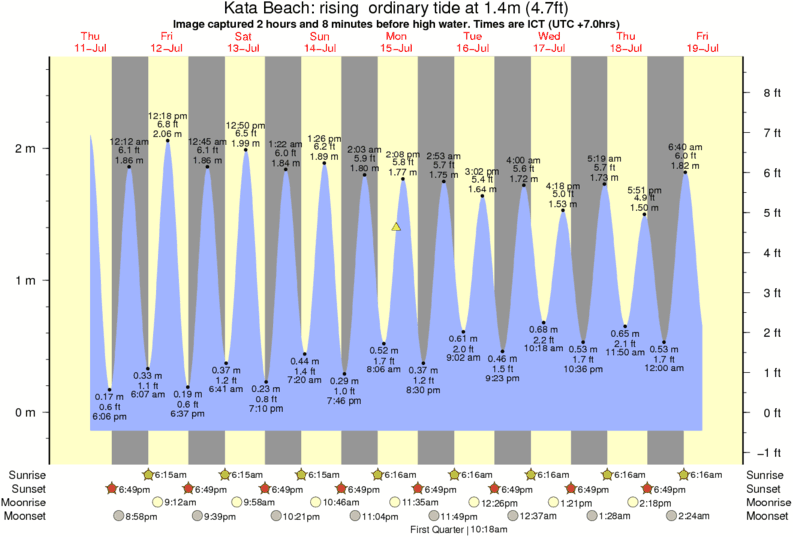 Forecast wind and swell just offshore from Kata Beach around the time the photo was taken