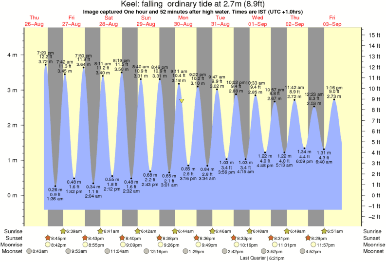 Image captured One hour and 52 minutes after high water (falling ordinary tide). Tide height was 2.7m (8.9 ft). Range 4.72m (15.5 ft). Toggle tide graph