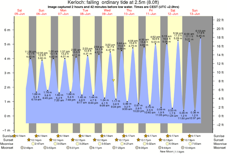 Image captured 2 hours and 42 minutes before low water (falling ordinary tide). Tide height was 2.5m (8.0 ft). Range 6.79m (22.3 ft). Toggle tide graph