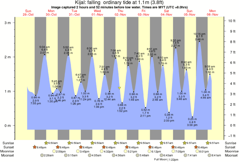 Image captured 2 hours and 52 minutes before low water (falling ordinary tide). Tide height was 1.1m (3.8 ft). Range 2.99m (9.8 ft). Toggle tide graph