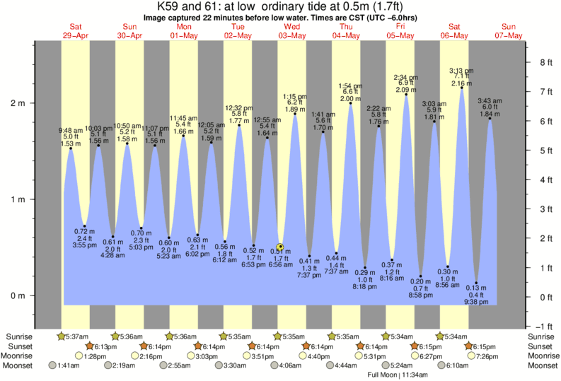 Image captured 22 minutes before low water (at low ordinary tide). Tide height was 0.5m (1.7 ft). Range 2.50m (8.2 ft). Toggle tide graph