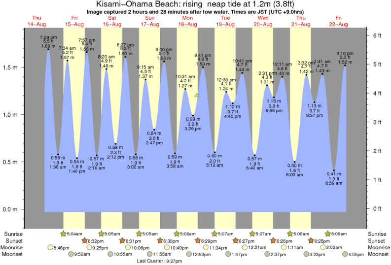 Image captured 2 hours and 28 minutes after low water (rising neap tide). Tide height was 1.2m (3.8 ft). Range 1.77m (5.8 ft). Toggle tide graph